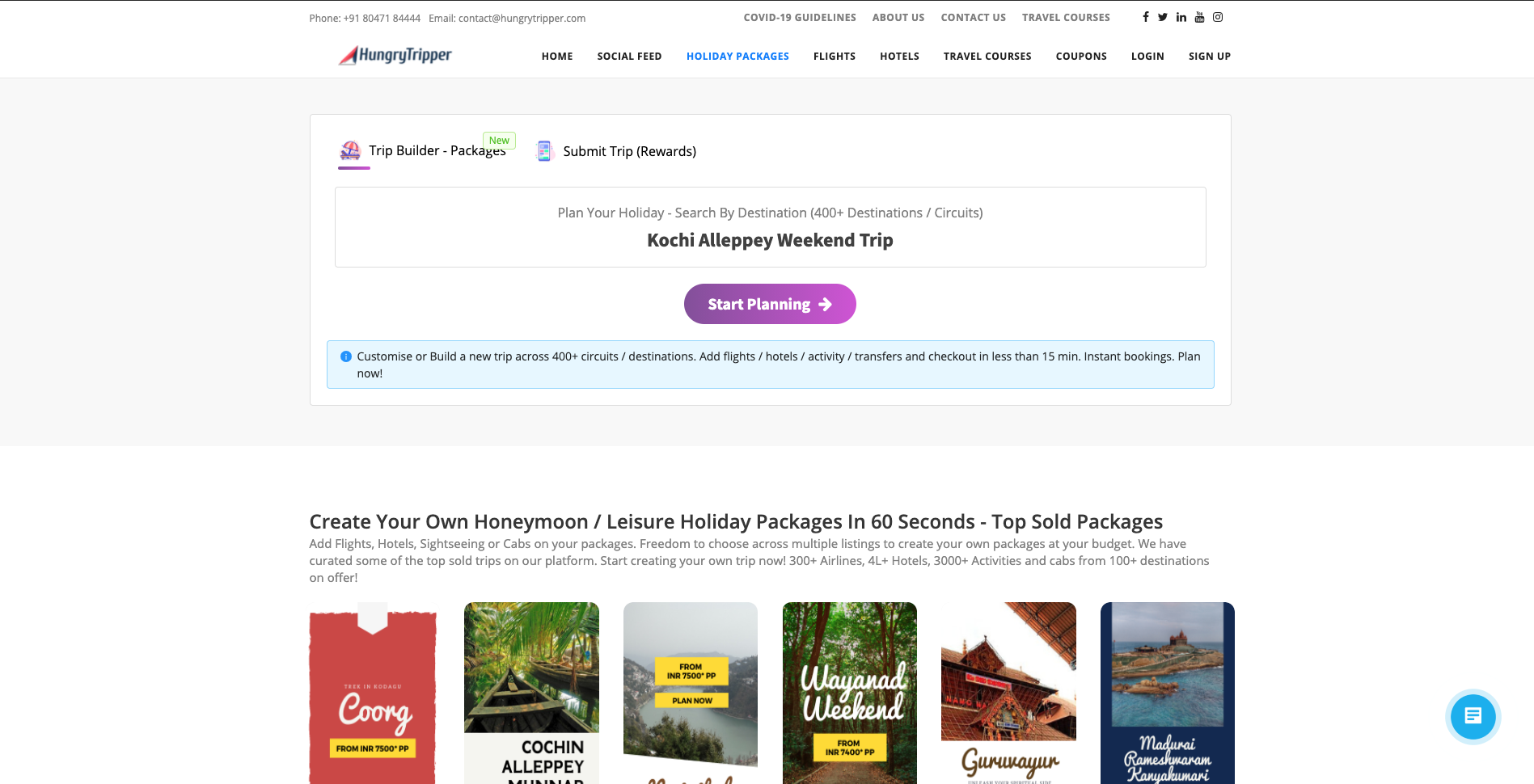 HungryTripper is a sustainable travel company focussing on flights, hotels, activities, and trip customization (along with a social sharing feature). The trips organized by HungryTripper ensures that a traveler not only appreciates the beauty of a place but also falls in love with the journey.